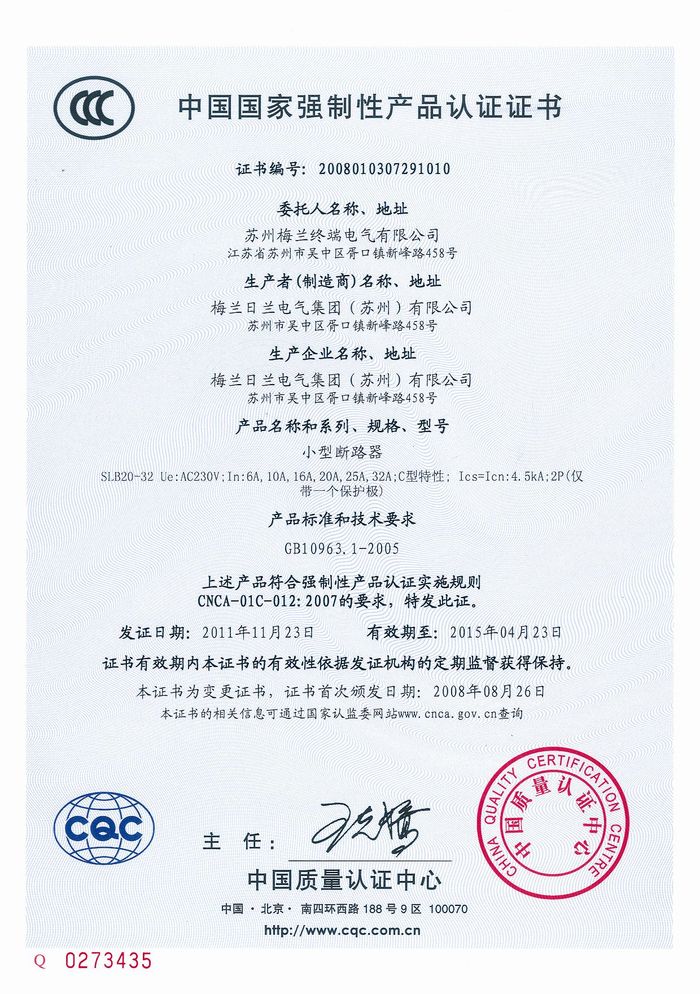 SLB20-32小型斷路器資質(zhì)證書