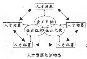 企業(yè)目標(biāo)、企業(yè)組織、企業(yè)文化是人才發(fā)展規(guī)劃的先決條件,這些內(nèi)容在企業(yè)發(fā)展規(guī)劃中需予以明確和規(guī)定。人才發(fā)展規(guī)劃本身由5個模塊組成,即:人才招募、績效評價、人才激勵、人才發(fā)展、人才退出。這5個模塊構(gòu)成了一個循環(huán),并與企業(yè)目標(biāo)、企業(yè)組織和企業(yè)文化之間發(fā)生相互作用。該模型的基本原理是Dr.W.Edwards Deming質(zhì)量管理PDCA循環(huán),P (Planning),做事要有計(jì)劃;D(Doing),按照計(jì)劃實(shí)施;C(Checking),檢查執(zhí)行情況;A(ACHEIg),經(jīng)驗(yàn)反饋與改進(jìn)。結(jié)合人力資源發(fā)展與管理工作的內(nèi)容,可以建立如圖所示的基本模型。
